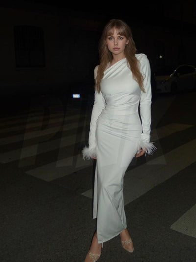 Abito lungo monospalla plume donna