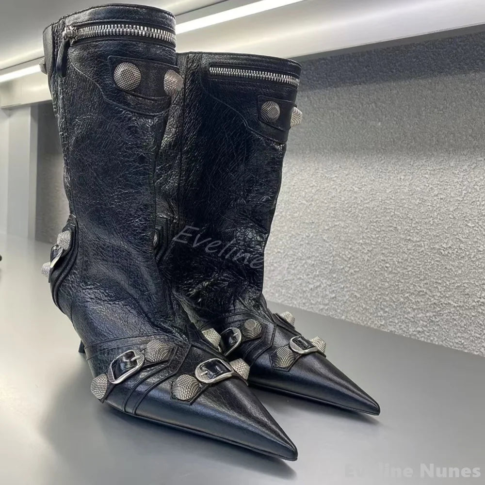 stivaletti neri in pelle con tacco