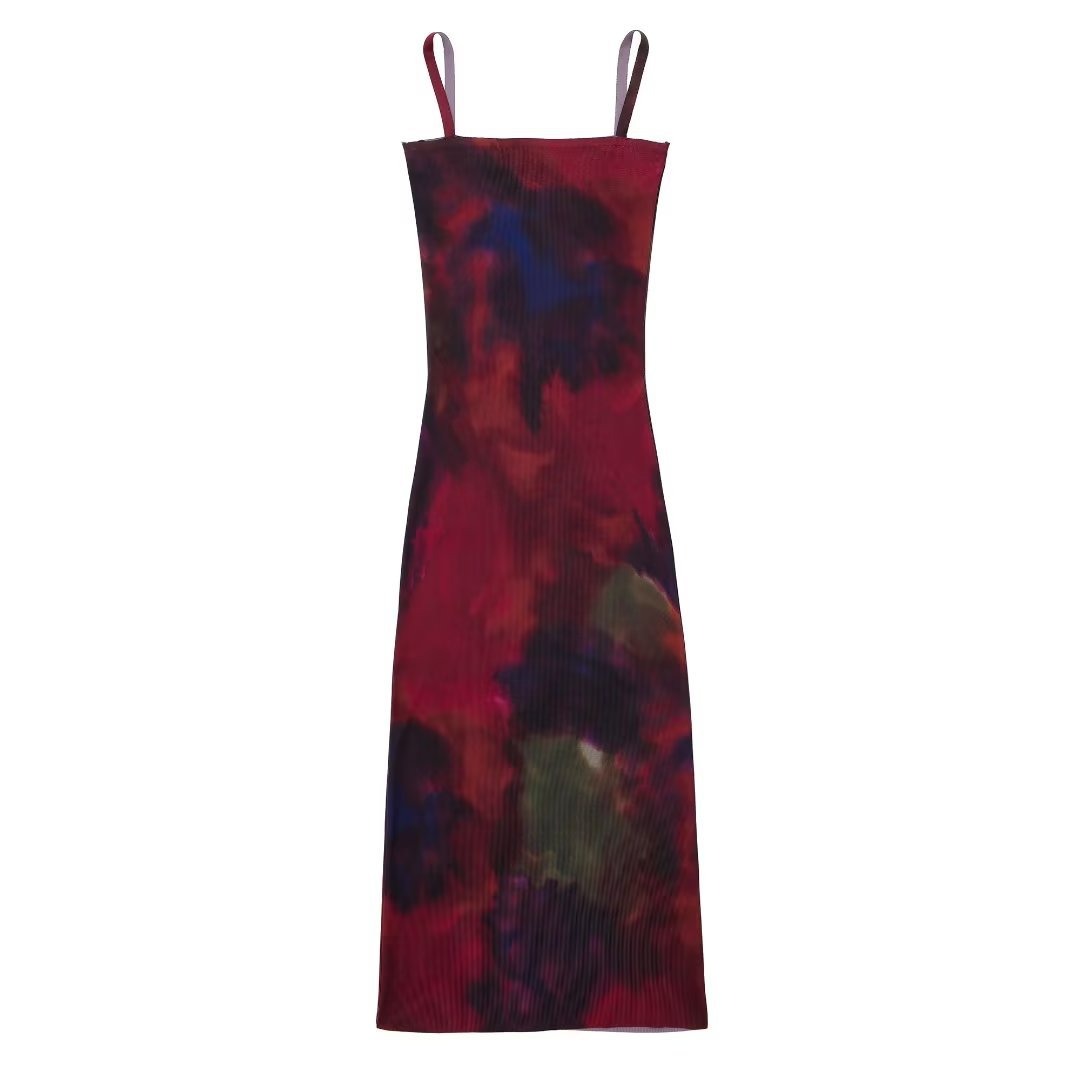Abito scollo dritto con bretelline fantasia donna